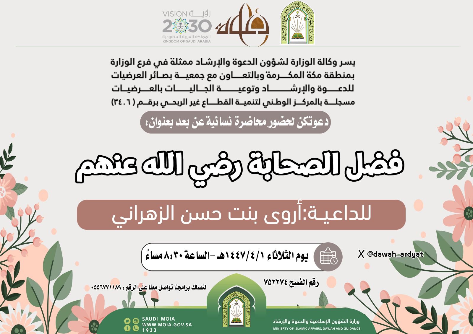 جمعية بصائر العرضيات للدعوة والإرشاد وتوعية الجاليات مسجلة بالمركز الوطني لتنمية القطاع غير الربحي برقم ( 3406 )